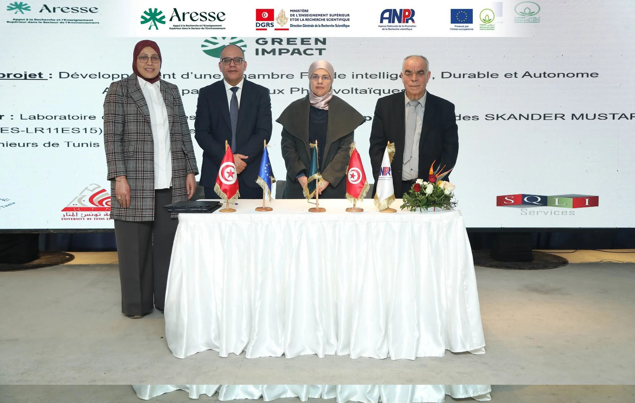 Nous avons la plaisir d’annoncer l’acceptation pour financement du projet SOLARCOLD « Développement d’une Chambre Froide intelligente, Durable et Autonome Alimentée par Panneaux Photovoltaïques » , sélectionné dans le cadre du programme Green Impact , du Projet Union européenne - Tunisie ARESSE (Projet d’Appui à la Recherche et l’Enseignement Supérieur dans le Secteur de l’Environnement).