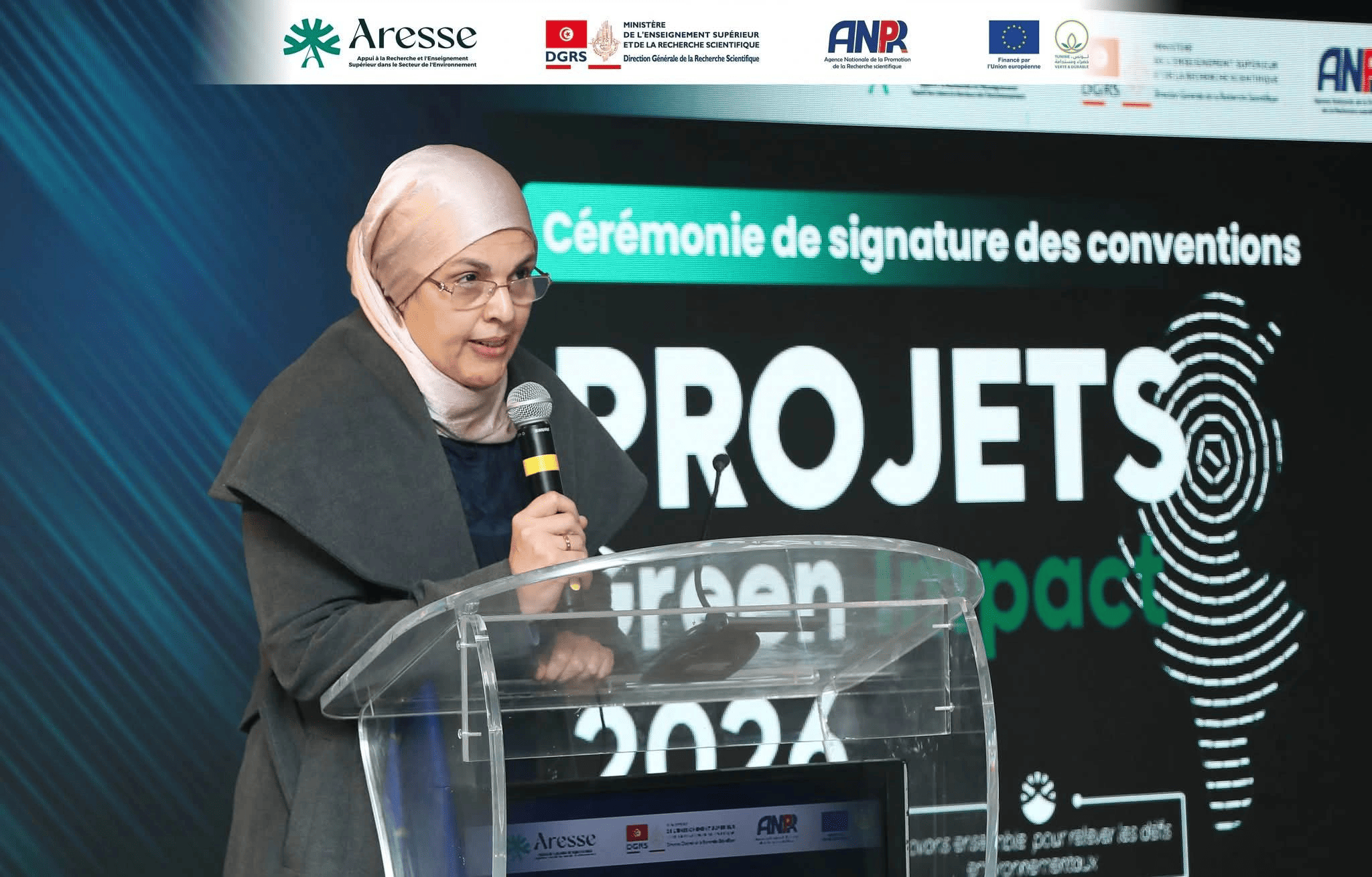 Voir plusJe suis honorée d’avoir participé, en tant que chef de projet, à la signature de la convention le 11 février dans le cadre de l’initiative Green Impact, lancée par l’Agence Nationale de la Promotion de la Recherche scientifique- ANPR dans le cadre du Projet d’Appui à la Recherche et l’Enseignement Supérieur dans le Secteur de l’Environnement – ARESSE, financé par l’Union européenne pour promouvoir des solutions innovantes à fort impact environnemental en Tunisie .